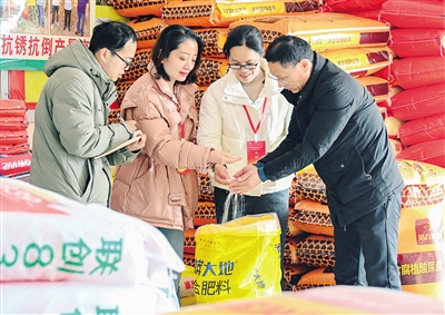 2月8日,源汇区相关职能部门工作人员到大刘镇供销社农资销售点检查化肥等农资供应情况,保障农民合法权益。本报记者 齐国霞 摄