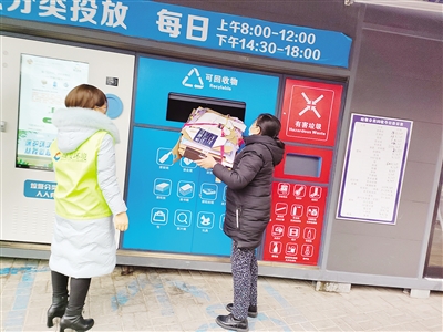 市生活垃圾分类领导小组办公室工作人员何申告诉记者,居民将可回收物交到回收网点。回收网点把积分返入居民“绿色账户”,积分可兑换现金。此外,回收网点的工作人员还根据不同居民的实际需求,提供预约上门等便民服务,并对回收物进行初步打包,统一运至分拣中心进行细分、消毒等,可回收物进入再生资源流通领域。这实现了从垃圾分类收集到再生资源回收的无缝衔接,有效提升了垃圾资源化利用率。“除了在小区设置垃圾分类智能回收箱,我们每个月还组织开展‘寻找垃圾分类之星’主题活动,通过入户宣传、积分兑换、知识竞答等方式,引导居民积极参与垃圾分类。”何申说。