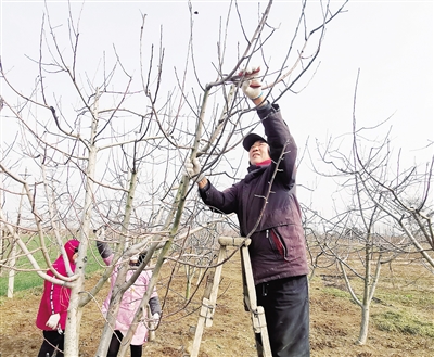 二月十三日,郾城区龙城镇十五里店村农民在苹果园修剪果树。近年来,该镇以促进农民增收为目的,积极引导群众发展林果、林下种植等产业。目前,林果业已成为帮助该镇群众致富增收的特色产业。本报记者 范子恒 摄