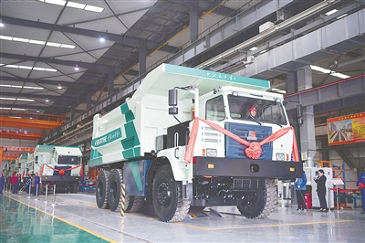 当日,由中铁长安重工有限公司自主研制的95吨纯电动矿用自卸车在西安市阎良区批量下线。近年来,该公司研制的大吨位电机车组、纯电动装载机、纯电动出渣装备等新能源工程设备产销两旺,助力绿色生产。