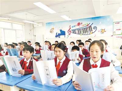 漯河小学学生正在诵读经典。