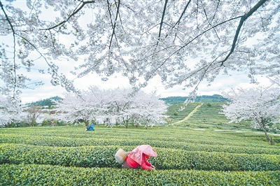 3月29日,茶农在贵州省遵义市余庆县松烟镇二龙村茶场采摘“明前茶”。