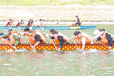 4月12日上午,在嵩山路沙河桥西侧,参加2023漯河龙舟公开赛的队伍正在训练。2023漯河龙舟公开赛将于5月1日在沙澧河交汇处举办。记者从大赛组委会了解到,目前已有23支队伍报名。