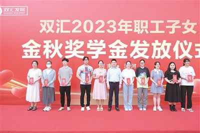 8月23日,双汇2023年职工子女金秋奖学金发放仪式在漯河举行。双汇发展总裁马相杰,党委书记、工会主席杜俊甫,营销公关副总裁周霄,工会副主席王晓玲等出席仪式。