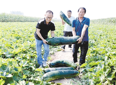 8月30日,郾城区新店镇长河李村的冬瓜种植户和驻村干部正在采摘冬瓜。近年来,该镇实行蔬菜规模化种植模式,拓宽农民增收渠道。本报记者 范子恒 摄