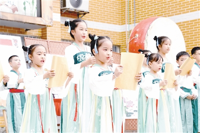 8月30日,广西河池市罗城仫佬族自治县第二小学学生在“开笔礼”上诵读古诗。最近,各地中小学师生陆续来到学校,以丰富多彩的活动迎接新学期的到来。