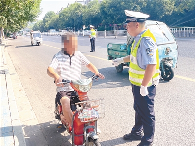 日前,《漯河市电动自行车服务和管理条例》(以下简称《条例》)出台,对电动自行车的销售、登记、通行、停放等作出了明确要求,将于2024年1月1日起施行。行动中,交警向众多路过的非机动车驾驶人员宣传了该《条例》,引导他们通过官方微信公众号了解具体内容。