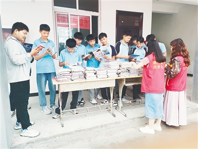 9月12日,市图书馆志愿者到临颍县三家店镇中心学校,为学生送去700册图书。本报记者 尹晓玉 摄