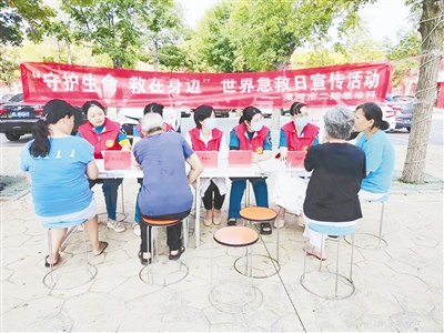 9月9日,市二院组织急诊科医护人员到神州鸟园东广场开展“世界急救日”主题宣传活动。尹红娅 摄