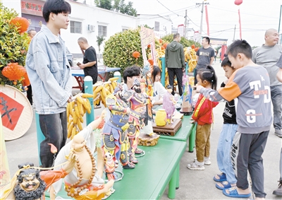 9月23日,在郾城区中国农民丰收节活动现场,漯河技师学院展示的非遗面塑作品吸引人们驻足观看。本报记者 王嘉明 摄