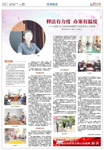 “工作中,苦辣酸甜咸的滋味我都尝过。法官处理的是别人的痛苦和烦恼,当事人有时也会把气往法官身上撒,这时我们就要尽量控制好自己的情绪,用宽容的心态面对当事人,耐心做好调解、判后答疑等工作,尽可能做到‘案结、事了、人和’。”王新蕾说。