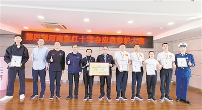 心肺复苏、创伤救护、应急演讲……当天,以“关爱生命 救在身边”为主题的河南省第四届红十字应急救护大赛举行。我市消防、医护、应急、社会救援等领域红十字志愿者组成的代表队,一路过关斩将,凭借过硬的业务素质和沉稳的赛场表现,以总分第一名的优异成绩获得团体一等奖。其中,吕钦梁、王晨思、宋嘉豪分别获得创伤救护项目个人一、二、三等奖,杨晨博获得救护演讲项目二等奖,师军帅获得心肺复苏项目三等奖。他们充分展示了我市红十字应急救护工作成果,彰显了我市红十字志愿者的风采。