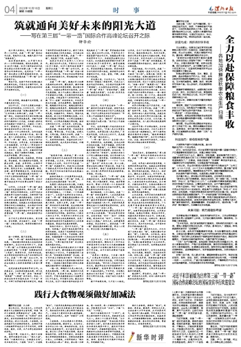纾发展之困,汇合作之力。“这不是简单的一条路或一条经济带,而是让全人类共同进步的倡议,为各国共同发展开辟了新道路”,正如国际社会评价的,共建“一带一路”照亮了“贫困的黑暗”,温暖着“被遗忘的角落”,让各国人民实实在在感受到共同发展的阳光……