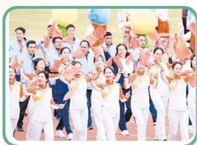在千人集体工间操表演中,选手们笑容灿烂,步伐灵动,动作整齐划一,展示了工间操动作的力与美。