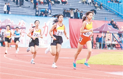 10月19日上午,市第九届运动会田径(青少年组)比赛在市体育场举行。图为青少年甲组女子1500米决赛现场。本报记者 杨 光 摄