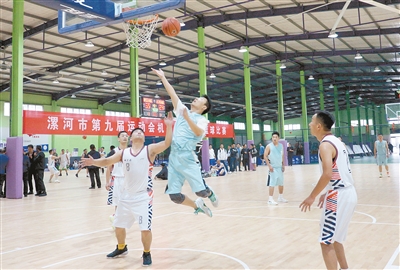 10月19日,市第九届运动会机关企事业组篮球赛在漯河市实验中等专业学校开赛。本报记者 王嘉明 摄