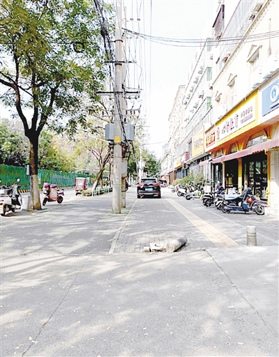 泰山北路与洪河路交叉口向北约70米路东,便道桩倒地。