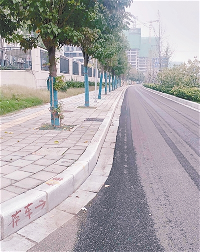 燕山路与淞江路交叉口向北约20米路西,有人在道边石上乱涂乱画。