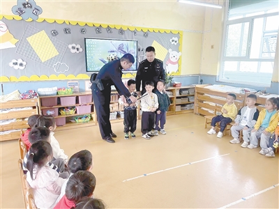 ③ 近日,郾城区实验幼儿园邀请法治副校长、龙塔派出所警官李鹏程进园宣传法律知识。胡 冬 摄