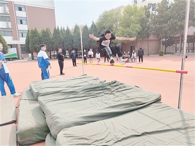 ④ 近日,市外语中学举行第三届体育艺术节。图为体育艺术节运动会上跳高比赛现场。本报记者 姚晓晓 摄