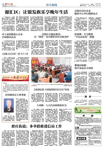 本报讯(记者 张晓甫 通讯员 王素雅 张 静)今年以来,召陵区翟庄街道采取多项措施,全面深入排查信访稳定风险隐患,建立完善信访矛盾预防化解和责任落实的长效机制,推动街道信访工作高质量发展。
