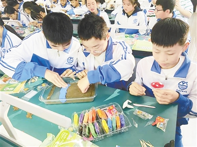 10月23日,郾城区初级实验中学开展“模拟生态瓶”活动,让学生了解植物的生长过程。谢荣争 摄