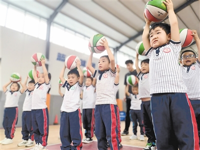 近日,柳江幼儿园举办了篮球训练营活动。