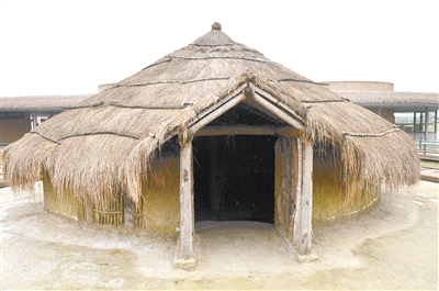 为了让人们直观地了解贾湖先民的住所,在贾湖遗址博物馆的室外体验区,设计人员1:1还原了贾湖先民居所,有半地穴式房屋、平地起建式房屋和干阑式房屋不同风格,让人能身临其境地感受史前先民生活的环境与创造的智慧。走进半地穴式房屋,只见圆锥形的茅草庐用泥土围圈,编织好的茅草紧实地铺在支撑架上。房屋内的地面低于外侧地面,形成了半地穴式房屋。这种建筑形式让记者想起农村田间地头常见的简易瓜棚,只不过外观形式有所不同。