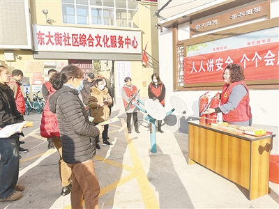 12月5日,源汇区应急管理局到顺河街街道东大街社区开展应急知识宣传。图为工作人员演示灭火器使用方法。本报记者 孙 震 摄