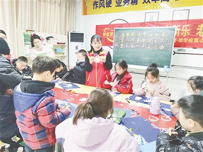 12月17日,郾城区沙北街道嵩山社区“儿童之家”举办手工制作活动。孩子们在志愿者引导下,做出了一个个妙趣横生的手工作品。