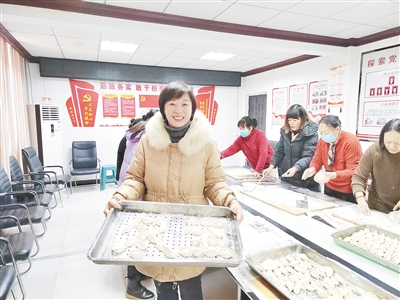图① 12月21日,源汇区老街街道受降路社区的志愿者聚在一起包饺子,并将热腾腾的饺子送至辖区高龄老人、独居老人、环卫工人等手中。本报记者 于文博 摄