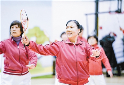 1月20日,2024年“迎新年 贺新春”漯河市老年人体育健身系列活动在市体育中心开幕。图为太极柔力球表演。本报记者 杨 光 摄