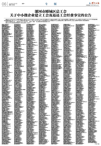郾城区总工会在全区实行工会经费由税务部门全额代征以来,至今仍有部分企业未建立工会组织,或未向郾城区总工会提供返还经费的工会账户,造成应返经费滞留。根据河南省总工会办公室转发《中华全国总工会办公厅关于规范建会筹备金收缴管理的通知》(豫工办[2021]37号)文件精神,请尚未建会开户4411家企业,自公告之日起15日内联系郾城区总工会办理建会开户及工会经费返还事宜。逾期未联系的单位,应返工会经费将严格按照文件要求管理使用。