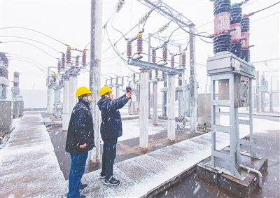 1月31日,国网漯河供电公司变电运维中心工作人员冒雪对110千伏沙北、姚庄、商桥等变电站进行特巡,查找安全隐患,确保设备安全稳定运行。