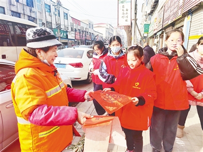 1月30日,郾城区东街小学组织师生开展写春联送祝福活动,为周边居民送去新春祝福。赵世杰 摄