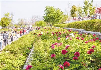 4月6日,清明节假期的最后一天,我市天气晴好,沙澧河风景区弘正园内的牡丹花竞相开放,吸引不少市民前来游玩。本报记者 杨 光 摄