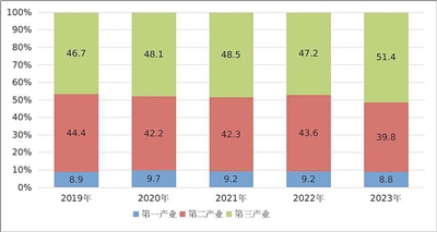 初步核算,全年全市地区生产总值1763.9亿元,比上年增长5.4%。其中,第一产业增加值154.7亿元,增长2.3%;第二产业增加值701.9亿元,增长7.1%;第三产业增加值907.4亿元,增长4.6%。三次产业结构为8.8∶39.8∶51.4。全年人均生产总值74491元,增长5.5%。