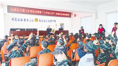 4月18日,临颍爱迪生幼儿园的小朋友走进临颍县公安局交警大队,开展实践活动。张亚平 摄