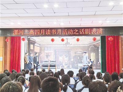 为引导学生更好地阅读经典,4月20日,漯河二高校团委、廉焕芝河南省学生发展指导工作室主办,漯河二高纵横演说社、小荷文学社、英语话剧社、织梦影视戏剧社、舌尖上的英语社、学生未来发展规划社联合承办的“品读文学经典、演绎人生百态”主题读书月活动话剧表演比赛正式拉开帷幕。