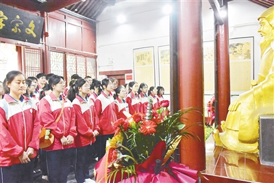 4月20日,漯河四高举行“拜字圣许慎,众学子祈福”暨远足活动。本报记者 杨 旭 摄