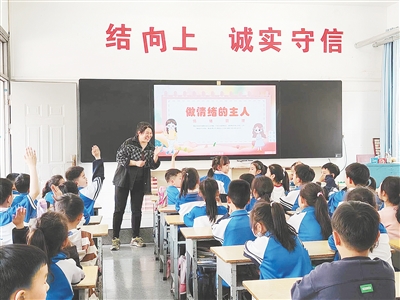 近日,源汇区柳江路小学开展“家长进课堂”活动。图为该校一(4)班学生家长在讲心理健康课。孙春雅 摄