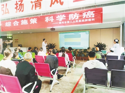 4月16日上午,市二院在门诊楼一楼大厅举办肿瘤防治宣传周健康科普知识讲座。曹秋花 摄