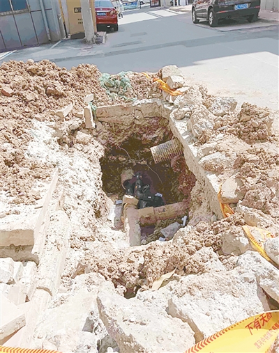 海河路与泰山路交叉口海河小区内,中裕燃气施工未设置警示牌。