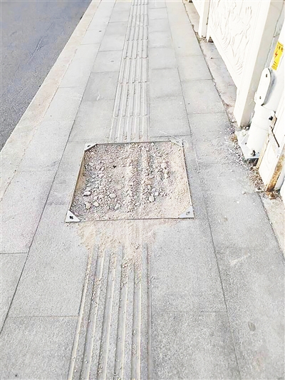 太行山北路与沙北路交叉口向南约60米路东,人行道破损。