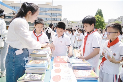 5月13日上午,漯河市党外知识分子联谊会主办的“小小图书漂流”活动(第一站)在漯河市实验小学启动。本报记者 李宜书 摄