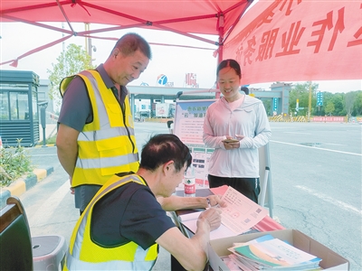 五月二十九日,临颍县农机推广服务中心在京港澳高速临颍站出口设立“三夏”小麦收割机跨区作业服务站,为跨区作业机手提供服务。本报记者 孙 震 摄