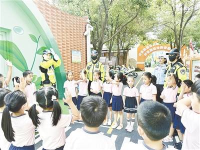 ①5月23日,市实验幼儿园邀请交警进课堂,开展交通安全知识宣传。王 菁 摄