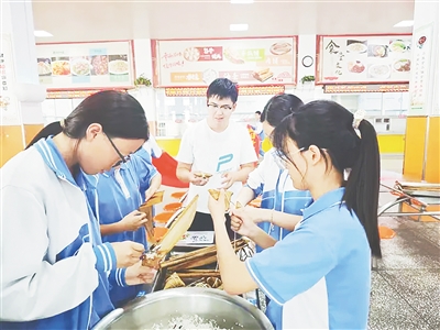 6月3日,漯河三中组织学生开展了“包粽子迎端午 传统文化进校园”主题活动。卢艳萍 摄