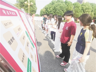 左图:6月6日,在漯河五高考点,考生在熟悉考场。