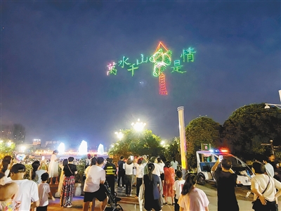 ▲6月8日晚,我市在沙澧河风景区红枫广场举行以端午节为主题的无人机表演。